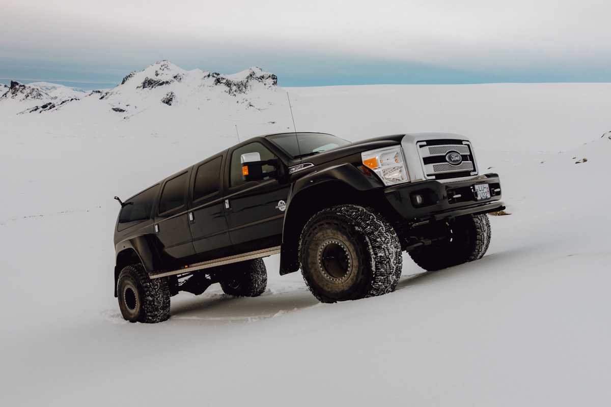 For this expedition we will use the absolute best of the best. 2 x Ford Excursion XL vehicles. Icelandic Super Jeeps, the swiss army knife of vehicles. Extended, heavily modified off-road vehicles, that comfortably sits 6 passengers, 2 in each row, with plenty of space. The cars are equipped with 44 inch tires, a central tire deflation system, Wifi and 16 USB ports. The vehicles are designed to drive on glaciers and volcanoes, and easily navigate the wildest river crossings.