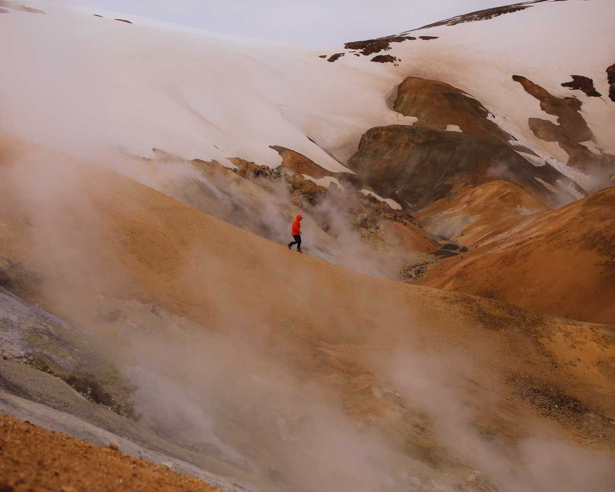 This is a day fully dedicated to the Kerlingarfjöll region. This area is defined by contrast: colorful rhyolite mountains, steaming geothermal fields, and nearby glaciers pressing in from the horizon. The terrain feels almost otherworldly, alive, shifting, and expressive. Today is deliberately unstructured. We move slowly, allowing light, weather, and instinct to guide us. This is a day for patience, exploration, and deep engagement with the landscape. There is no rush, no pressure, only time.